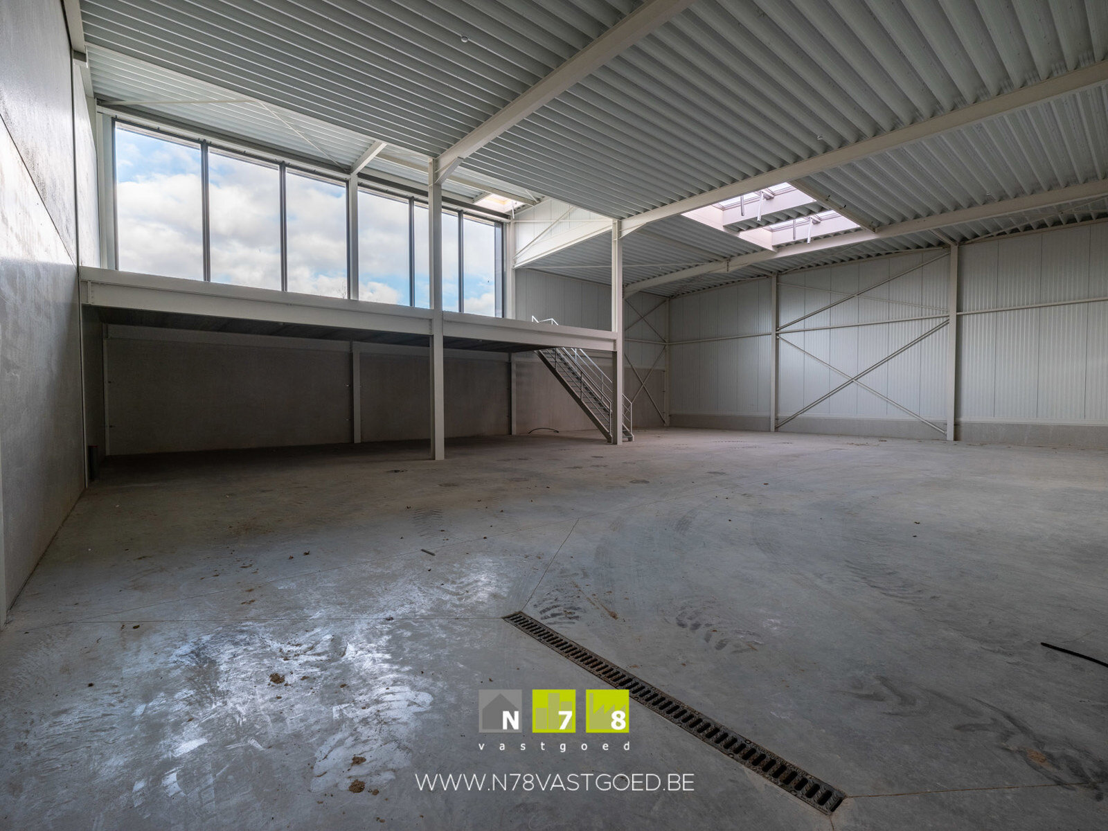 KENMERKEN - oppervlakte hal: 396m² - oppervlakte verdiep: 83m² - 1 sectionaalpoort (4.00m breed x 4.20m hoog) - gevelbekleding: geïsoleerde sandwichpanelen - gepolierde betonvloer - vloer geïsoleerd - verkoop in CASCO staat